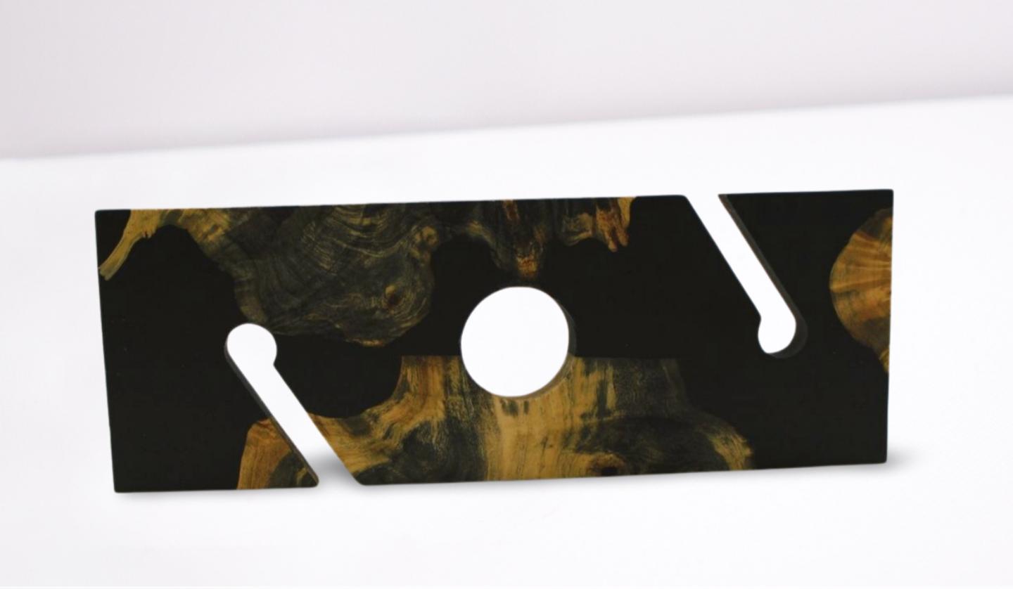 Crafted from unique buckeye wood and accented with a flowing river of resin, this wine caddy is made to elevate any celebration. Each caddy is meticulously shaped to highlight buckeye’s naturally dramatic grain, paired with the refined artistry of resin in Onyx Black, Boar Bora Blue and Emerald Green.